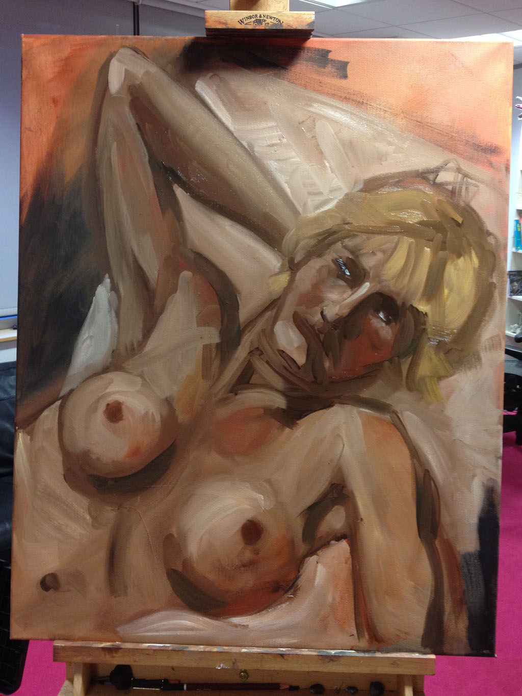 So Its been a couple of months since my last life drawing session. As is often the case with these things it felt like I had forgotten everything while working on this one. Oil paint on canvas with a live model. The addition of a cloth scarf was nice although I struggled to render it in a way to make the hair beneath stand out.